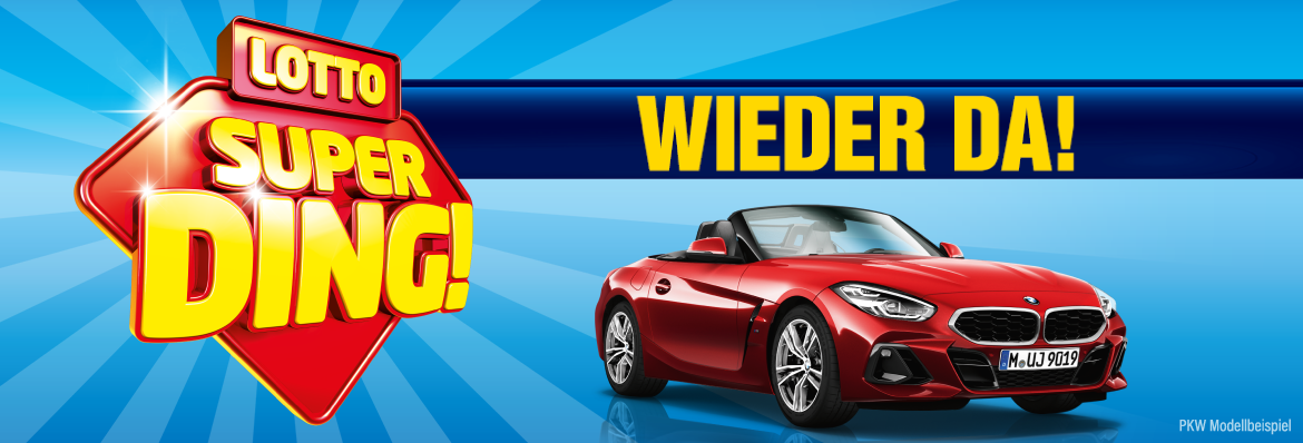 Unter allen LOTTO SuperDing!-Spielaufträgen wird 1 x ein BMW Z4 sDrive20i im Wert von über 52.000 € verlost. Die sagenhafte Chance auf diesen Gewinn beträgt 1:25.000!
