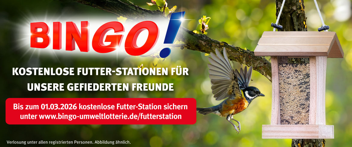 Jeder Interessierte mit Wohnsitz in Schleswig-Holstein kann sich bis einschließlich 1. März 2026 unter www.bingo-umweltlotterie.de/futterstation für die postalische Lieferung eines kostenlosen Futter-Station-Bausatzes registrieren. Sollten sich am Ende der Registrierungsphase mehr als 500 Personen für eine Futter-Station vorgemerkt haben, entscheidet das Los.