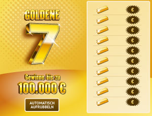 Rubbeln Sie die Spielfelder mit den Goldbarren und den €-Zeichen frei. Befindet sich unter einem Goldbarren eine "7", ist der Betrag daneben Ihr Gewinn. Das Glückssymbol "Goldbarren" verdoppelt den danebenstehenden Betrag. Bei einem "Joker" haben Sie alle 10 Beträge gewonnen. Mehrfachgewinne sind möglich.