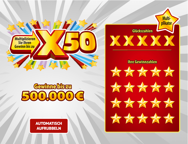 Ein Los für große Gewinne: Mit der X50 haben Sie die Chance auf das Fünfzigfache Ihres Gewinns!