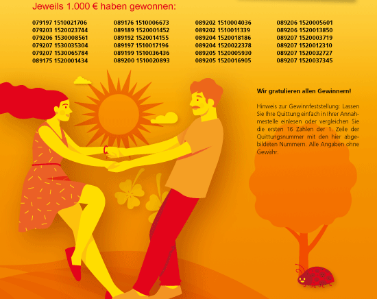 Die Spielteilnehmer aus Schleswig-Holstein mit den folgenden Quittungsnummern haben gewonnen: